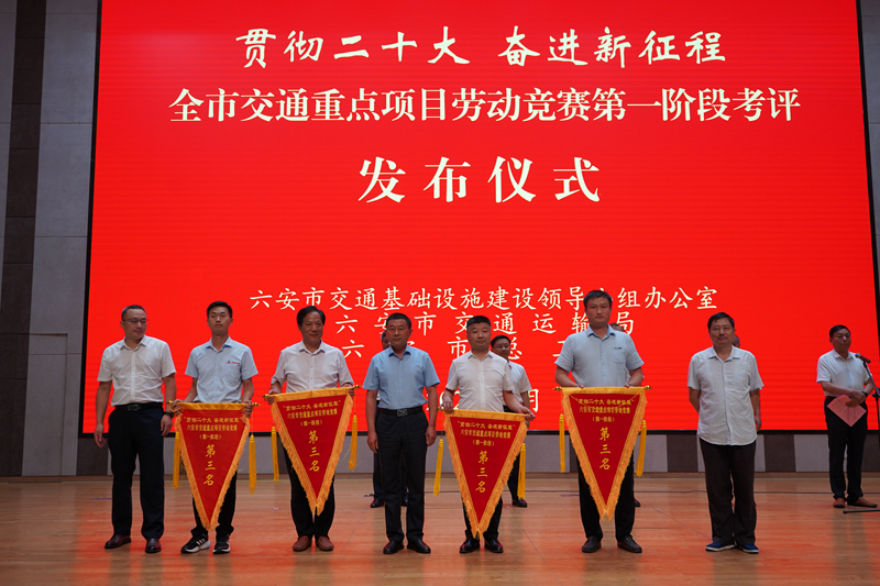 7月15日,在六安市交通運(yùn)輸基礎(chǔ)設(shè)施領(lǐng)導(dǎo)小組辦公室、市交通運(yùn)輸局、市總工會(huì)聯(lián)合舉行的“貫徹二十大 奮進(jìn)新征程”全市交通重點(diǎn)項(xiàng)目勞動(dòng)競(jìng)賽第一階段考評(píng)發(fā)布儀式上,公司承建的六安G237一期項(xiàng)目榮獲國(guó)省干線公路項(xiàng)目第一名、霍邱縣彭塔至潘集段建設(shè)工程榮獲第三名。