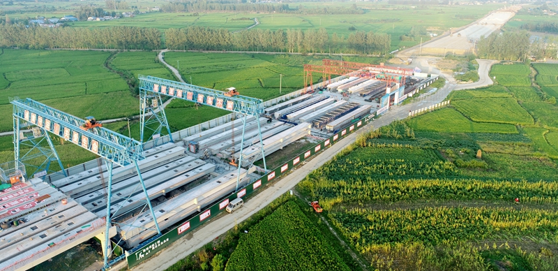 作為項(xiàng)目建設(shè)的“重頭戲”,三個(gè)預(yù)制梁場(chǎng)建設(shè)與1000余片箱梁的預(yù)制和架設(shè)是保障項(xiàng)目工期的重要環(huán)節(jié)。受到土地政策和路基施工工期因素影響,項(xiàng)目西岸梁場(chǎng)原場(chǎng)地建設(shè)方案受到很大制約。為此,項(xiàng)目負(fù)責(zé)人帶領(lǐng)技術(shù)人員頂著酷暑,找場(chǎng)地、拿方案,將原定于路基段建設(shè)的兩個(gè)梁場(chǎng)改為橋梁區(qū)建設(shè),并及時(shí)安排人員跟蹤土地丈量及臨時(shí)用地相關(guān)事宜。在梁場(chǎng)建設(shè)過(guò)程中,努力克服場(chǎng)地施工交替頻繁、高溫雨水、道路運(yùn)輸條件較差等多項(xiàng)難題,在6月實(shí)現(xiàn)首片箱梁澆筑;7月西岸預(yù)制梁場(chǎng)建設(shè)基本完成;8月首跨箱梁架設(shè)完成;9月3個(gè)梁場(chǎng)均達(dá)到滿產(chǎn)。勞動(dòng)競(jìng)賽沖鋒號(hào)吹響以來(lái),項(xiàng)目牢固樹立“一切圍繞項(xiàng)目轉(zhuǎn)、一切聚焦項(xiàng)目干”的工作理念,確保日日有重點(diǎn)、周周有變化、月月有成效。目前樁基、墩柱、箱梁預(yù)制架設(shè)施工進(jìn)度始終保持全線領(lǐng)先優(yōu)勢(shì)。