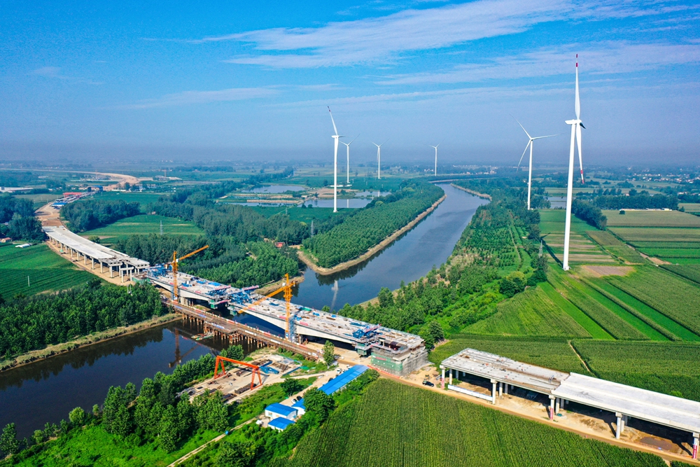 徐淮阜高速淮北段項(xiàng)目邁入瀝青面層施工階段,控制性工程沱河大橋主橋右幅已順利合龍,計(jì)劃于國(guó)慶節(jié)前完成全橋合龍。