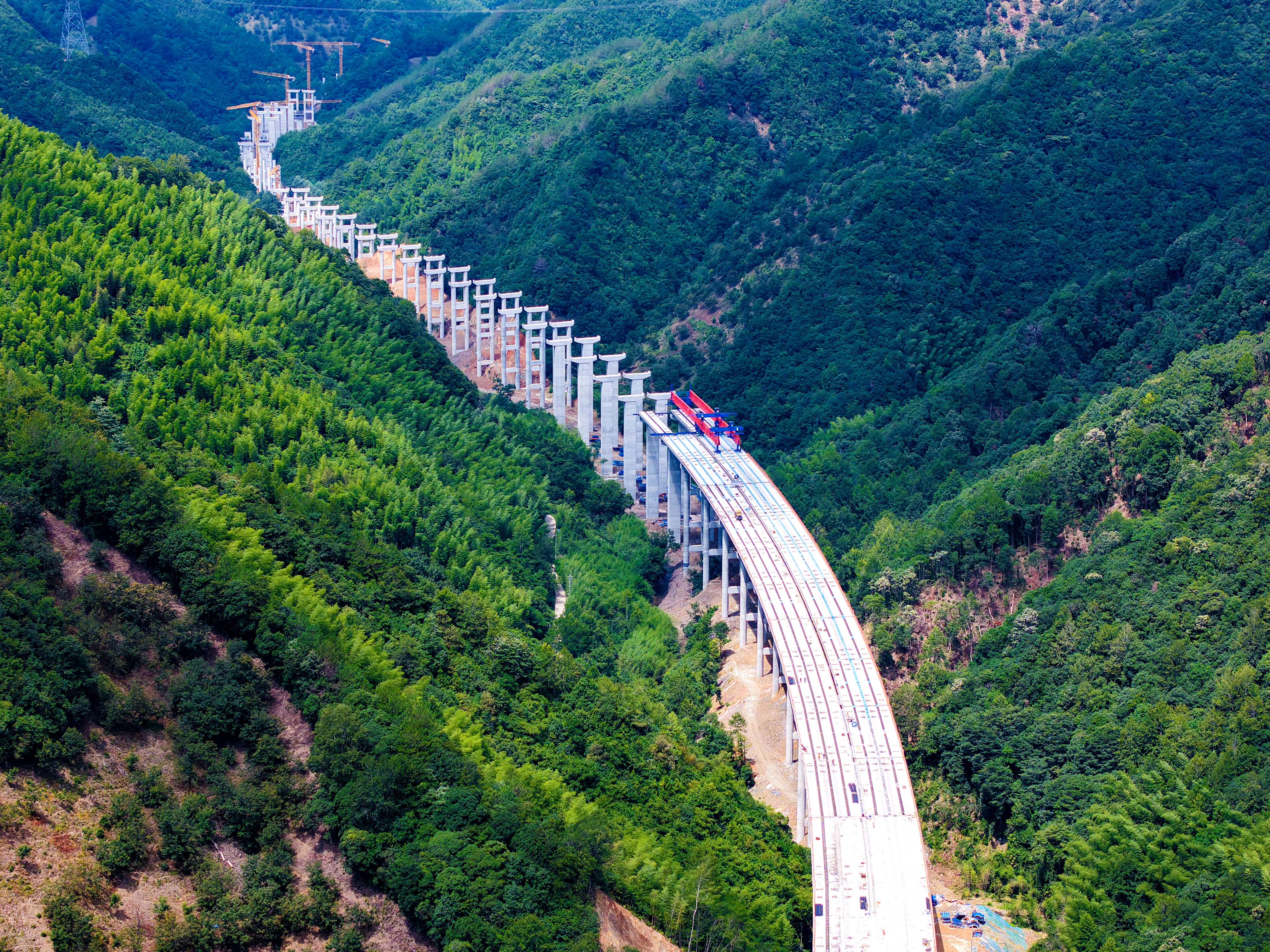 安吉至旌德高速寧國至旌德段項(xiàng)目起點(diǎn)位于寧國市,設(shè)胡樂樞紐與溧寧高速銜接,路線向西延伸,終于旌德縣蔡家橋鎮(zhèn)接入S11蕪黃高速,全長約32公里。該項(xiàng)目作為促進(jìn)“大黃山”地區(qū)與滬蘇浙城市群互聯(lián)互通的重要通道,建成通車后,旌德至杭州的車程將縮短至2小時,大幅提升跨省出行效率。由安徽建工路橋承建的寧旌高速路基1標(biāo),包含特大橋1座、大橋3座、樞紐互通1處及短隧道1座。