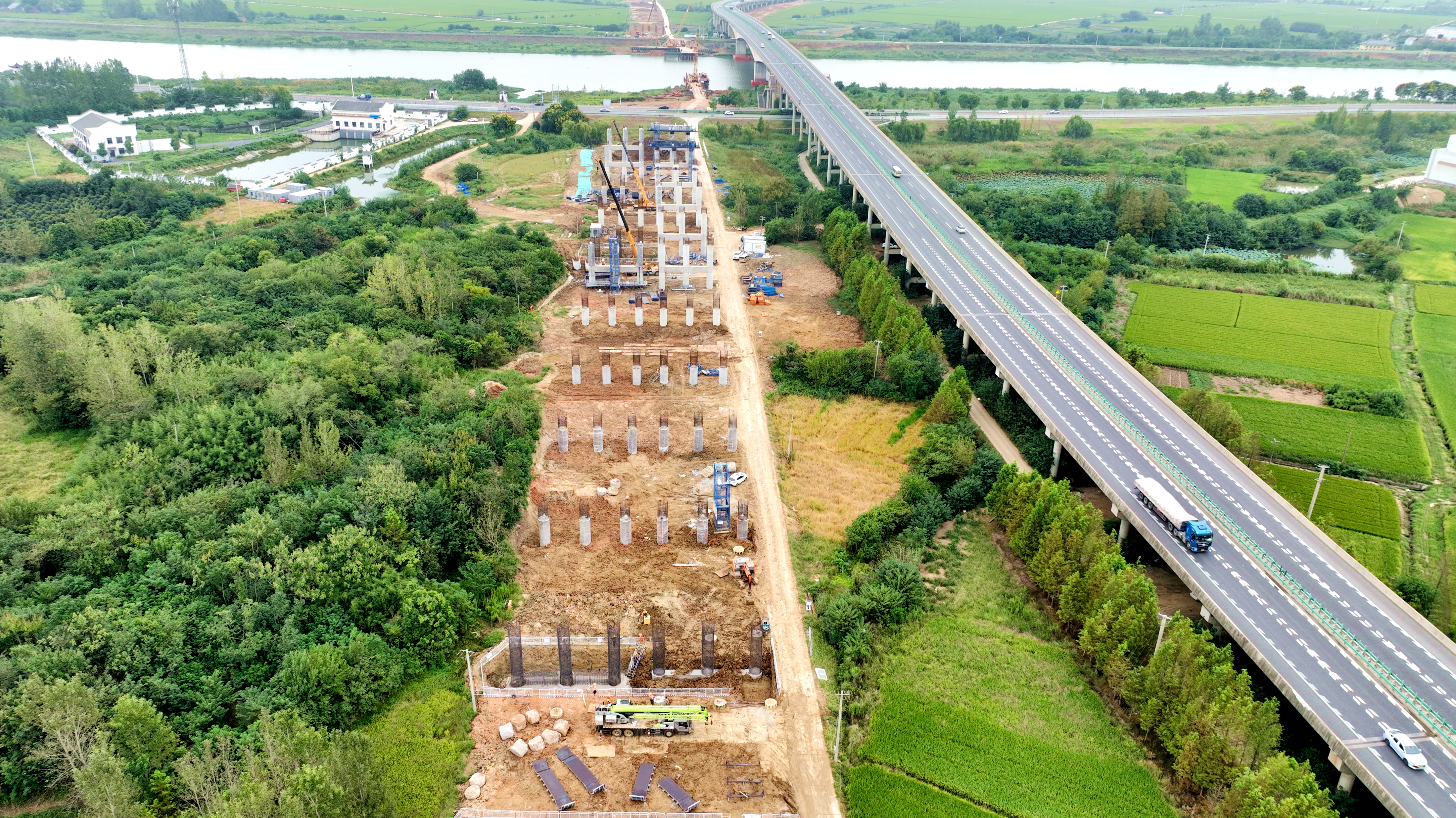 項目包含特大橋2座、大橋1座、中橋1座,共需澆筑樁基1488根。自項目開工以來,面對征地拆遷、高壓桿線遷改、千年古遺址保護等一系列難點堵點,項目組織黨員先鋒隊靠前協(xié)調(diào)破解難題,積極創(chuàng)造有利施工條件,同時緊盯節(jié)點目標(biāo),精準(zhǔn)優(yōu)化人力、設(shè)備等資源配置,確保各工序銜接順暢,推動施工進程穩(wěn)步向前。
