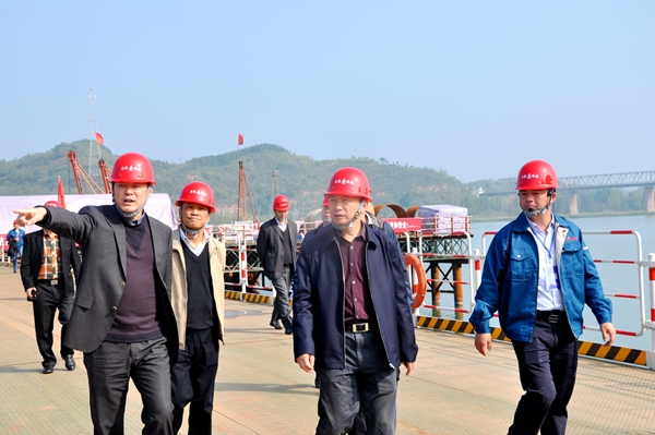 集團(tuán)董事長、黨委書記趙時(shí)運(yùn)等領(lǐng)導(dǎo)視察黃河特大橋施工現(xiàn)場(chǎng)