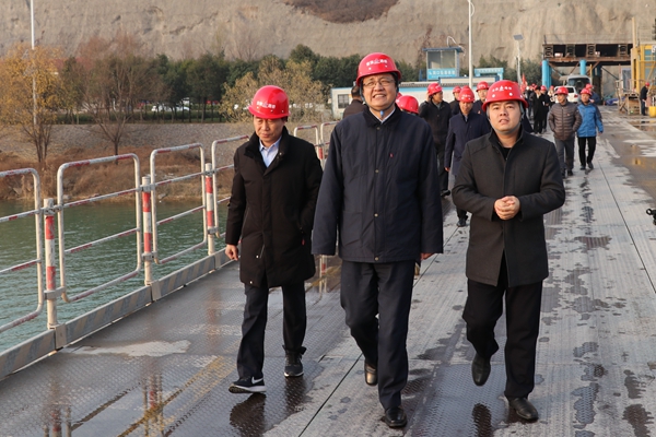 12月18日,河南省交通運輸廳黨組成員、副廳長徐強蒞臨公司承建的濟(jì)洛西高速黃河特大橋項目調(diào)研指導(dǎo)工作,河南省收費還貸中心副主任呂小武、孟津縣委書記楊劭春、濟(jì)洛西高速公路建設(shè)有限公司董事長楊新民等隨同。