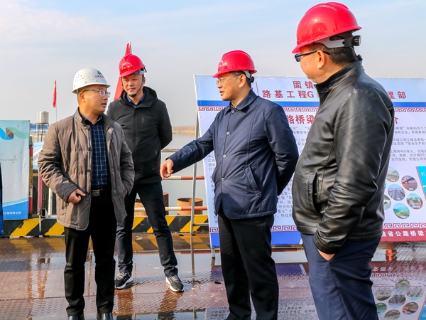 羅寧一行先后查看了澮河特大橋主橋鋼梁架設(shè)、橋面板安裝、橋面系施工現(xiàn)場,聽取項目工程概況、特大橋施工管理等方面的匯報,詳細(xì)了解項目趕超進度、達(dá)產(chǎn)滿產(chǎn)、優(yōu)化工藝等做法,并圍繞施工重難點、安全文明管理進行了深入交流。羅寧對項目取得的成績給予充分肯定,希望項目繼續(xù)保持大干狀態(tài),全力奪取2021年“縣縣通”高速的最終勝利。