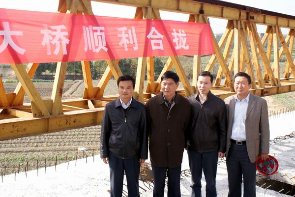 青弋江大橋全長454米,凈寬11米,結(jié)構(gòu)形式為30×10+70+42×2的簡支箱梁與現(xiàn)澆懸臂橋。該工程于2007年開工,前期由于施工條件的限制和其它不利因素,工程進展頗不順利。后來在公司領(lǐng)導(dǎo)的大力支持下,全體施工人員上下合力,積極創(chuàng)造條件進行施工,全橋終于順利合龍。盛總在合龍現(xiàn)場指出,雖然大橋已順利合龍貫通,但后期任務(wù)還相當(dāng)艱巨,橋面、護欄、橋頭搭板和護坡等都需要抓緊施工,在保證質(zhì)量、保證安全的情況下,組織力量加快施工進度,確保實現(xiàn)元月通車的目標(biāo)。